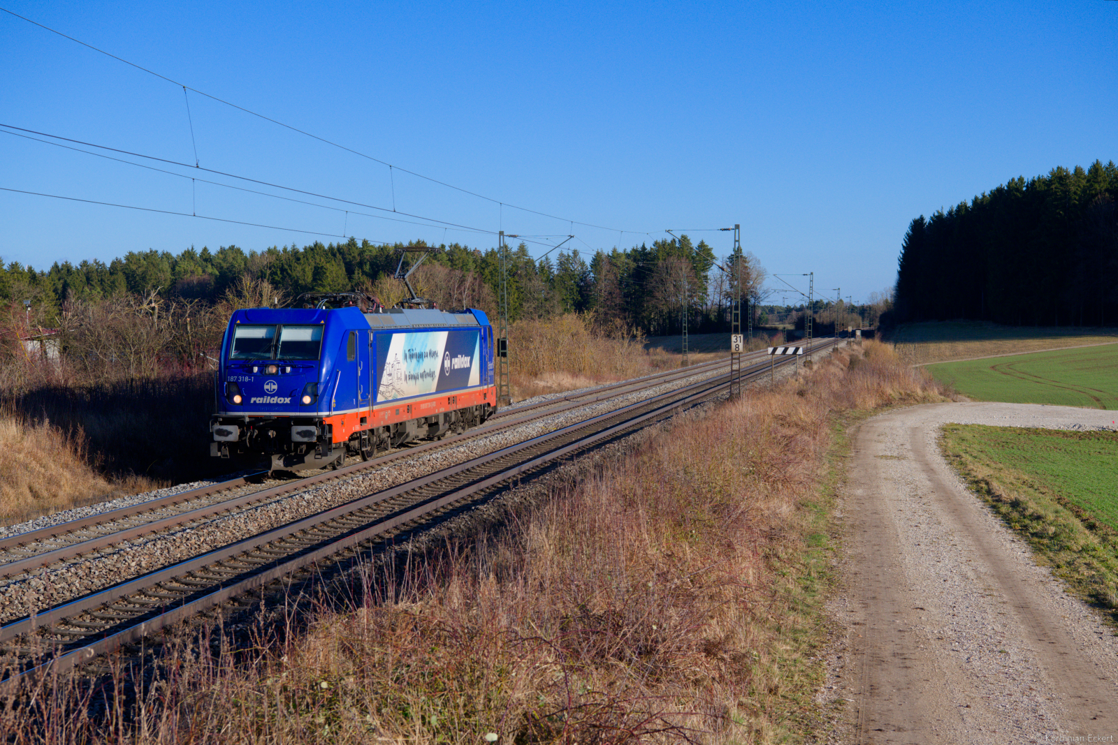 187 318 Raildox  In Thüringen zu Hause - In Europa unterwegs  als Tfzf bei Parsberg Richtung Nürnberg, 23.02.2022