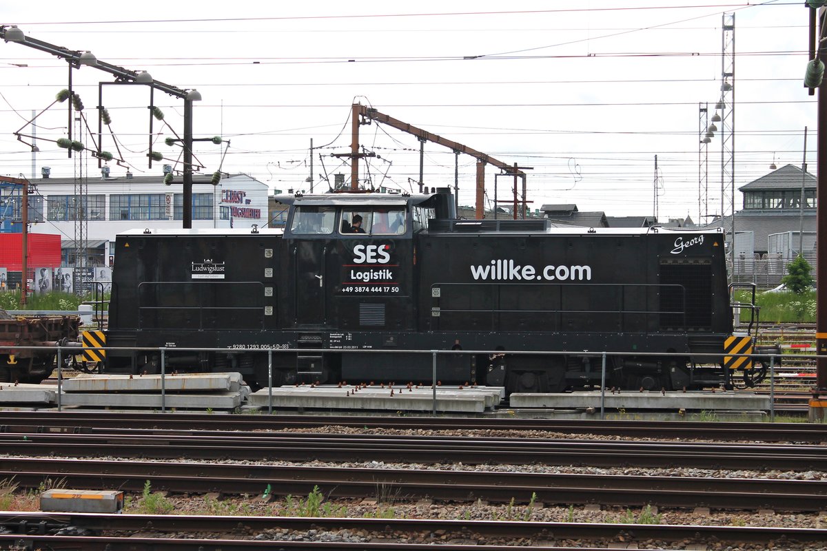 202 535-1 "Chris" von SES Logistik steht am 17.04.2011 mit Flachwaggons beladen mit ausgebauten Gleisjochen in Aachen West. Im Hintergrund sieht man den 50 to. Kran von Schweerbau mit dem die 15m langen Gleisstücke verladen werden. Dort werden zur Zeit die Gleise am Bahnsteig erneuert. Kompliment an die Firma SES und ihre Mitarbeiter, auch diese V100 ist in einem top-gepflegten Zustand, der Tf nutzt die Gelegenheit gerade um den Führerstand mit einem Handfeger zu reinigen.