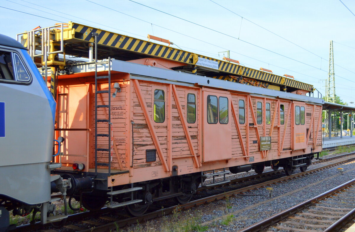 Fahrleitungsmontagewagen ( FMW ) Bauart 503 "FMW Nr.4" (99 80 9536 001 7 D-RPRS) am Haken von "218 308-5" am 22.07.22 Durchfahrt Bahnhof Stendal Hbf.