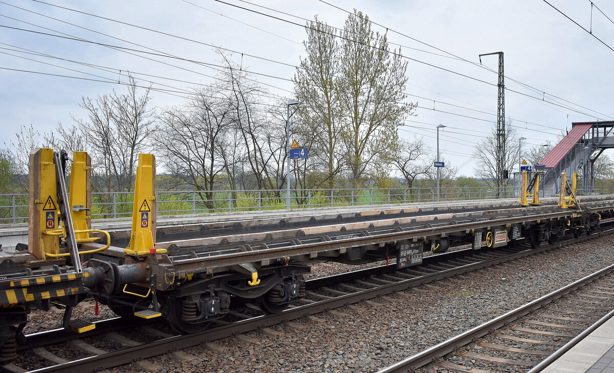 Vom BÜ Schützenstraße hat man einen guten Einblick in das Bw der Strabag in Haldensleben. Hier stehen am 13.05.2023 die G2000 273 005-9 und ein Zweiwege-Unimog.