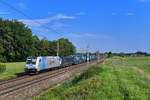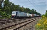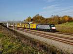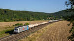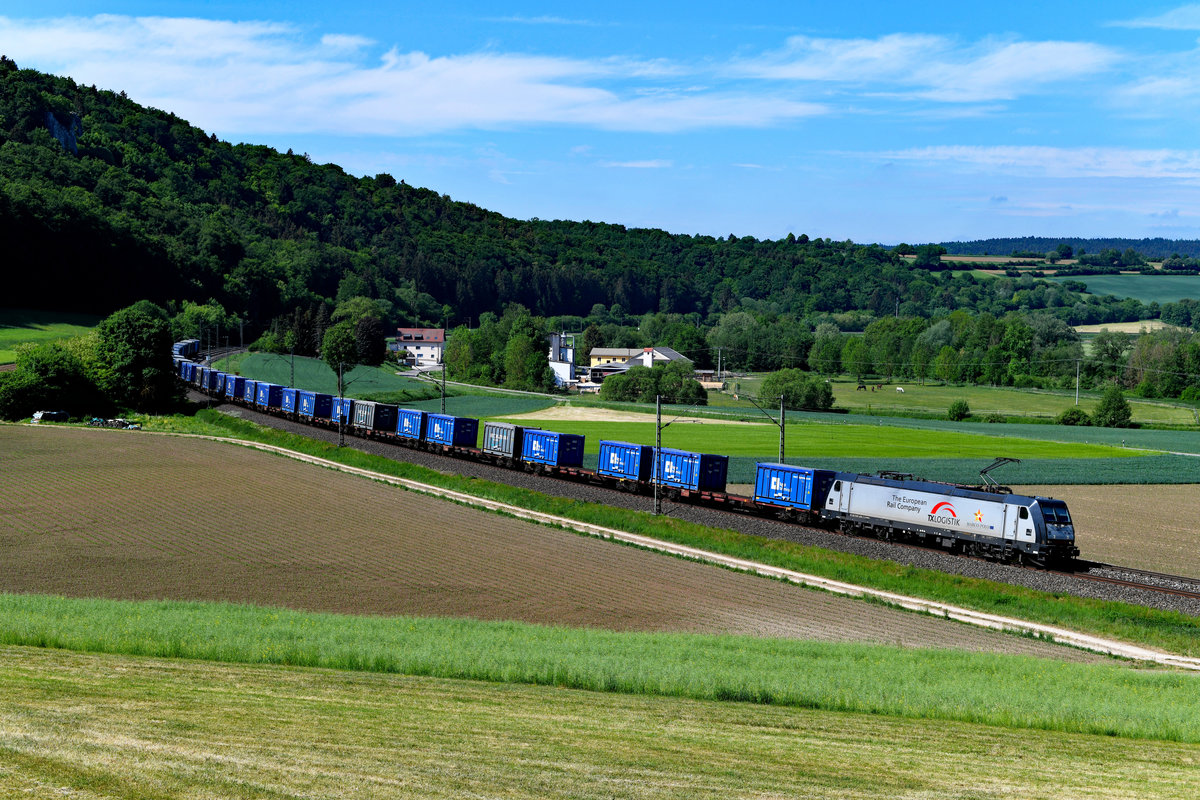 Am 13. Mai 2018 konnte ich bei Breitenfurt im Altmühltal die für TXL fahrende 185 408 mit dem DGS 43851 von den Buna Werken nach Lugo fotografieren. Mit diesem Zug wird kontaminierte Erde zur fachgerechten Entsorgung von Italien nach Deutschland gebracht.