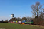 185 539 & 185 521 war mit einem "KLV" am 1. März 2021 bei Grabenstätt im Chiemgau in Richtung München unterwegs.