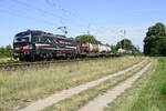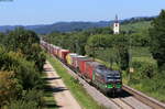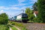 Bei Obereichstätt im Altmühltal begegnete mir am 26. März 2022 der von 193 582 bespannte KLV-Zug DGS 43101 von Wanne-Eickel nach Verona Q.E. in Norditalien. In der vorfrühlingshaften Landschaft hob sich der "Wald", wie dieser Vectron scherzhaft unter Eisenbahnfreunden genannt wird, gut vom bräunlichen Hintergrund ab.