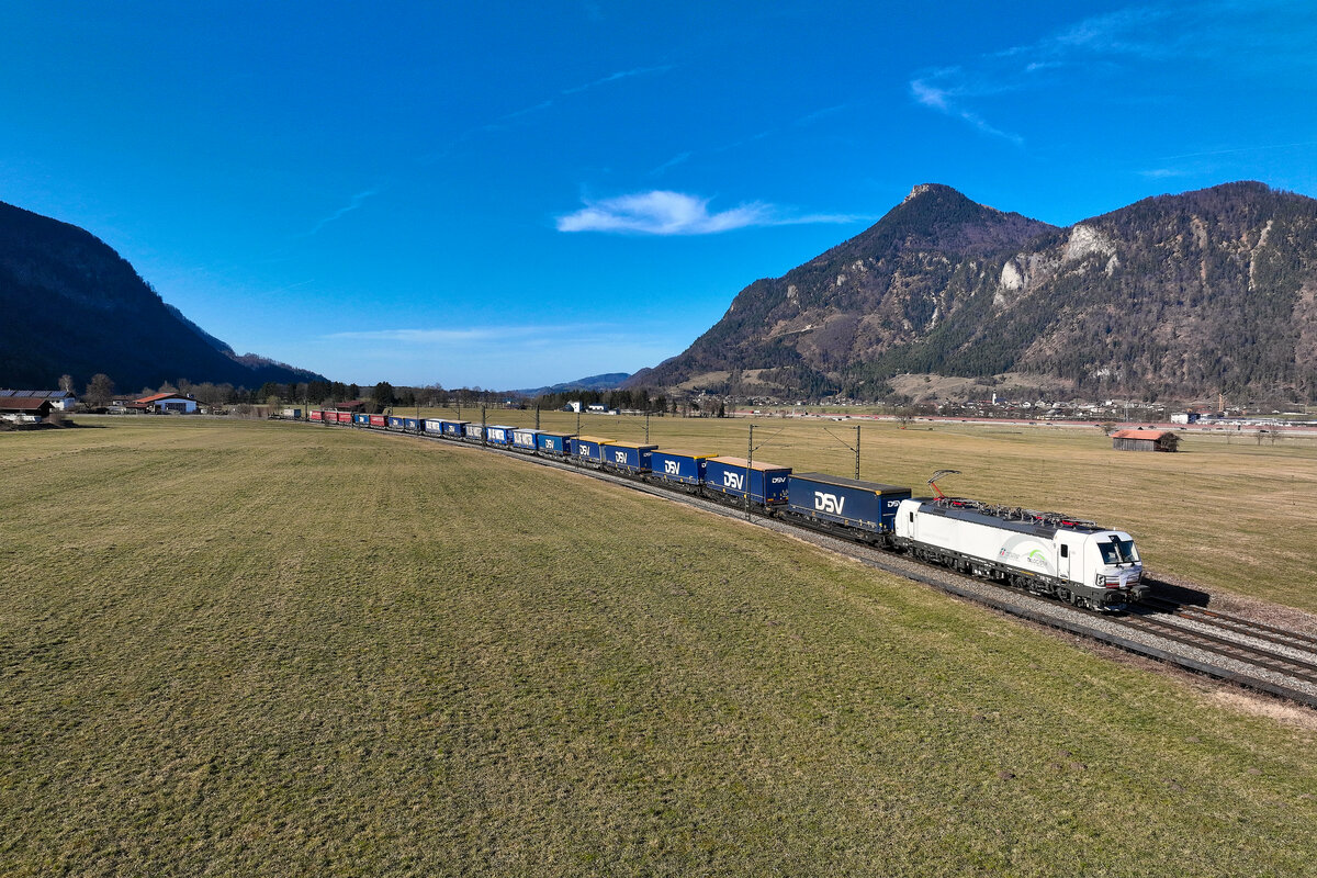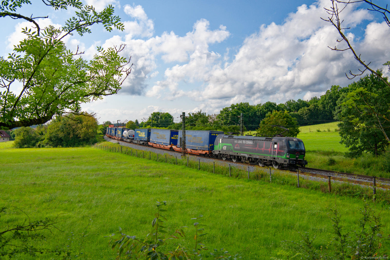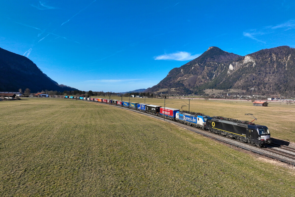 193 830 ELL/TXL und 192 009 Northrail/TXL "Railfanatics" mit einem KLV-Zug bei Beratzhausen Richtung Nürnberg, 07.09.2020