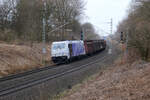 TX Logistik AG, Bad Honnef [D] mit der "185 529-5" [NVR-Nummer: 91 80 6185 529-5 D-ATLU] und einem KLV-Zug aus Rostock Seehafen kommend am 01.03.23 Durchfahrt Bahnhof Flughafen BER Terminal 5