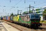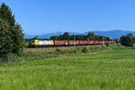 193 997 die "Pferdelok" war am 14. Juni 2023 mit einem "KLV" bei Niederaudorf auf dem Weg nach Kufstein.