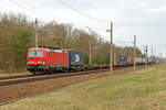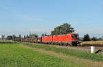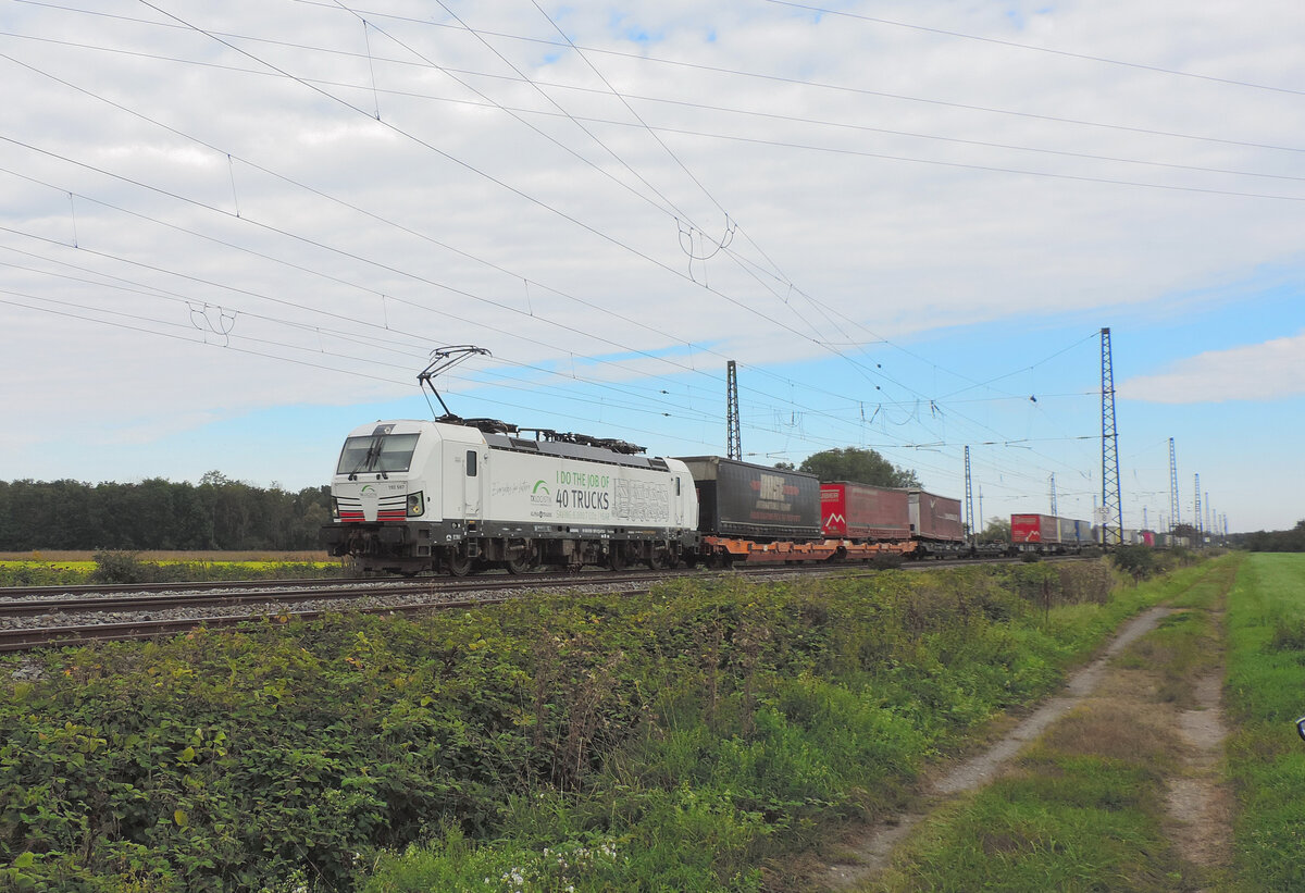 Niederschopfheim - 16. September 2023 : Werbelok 'I do the job of 40 trucks' 193 597 mit einem KLV in richtung Süden unterwegs.