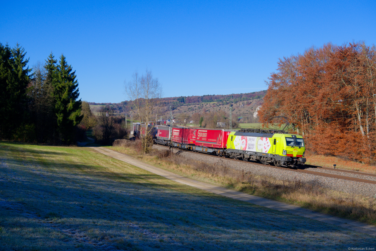 189 103 + 189 924 mit einem Stahlzug am 30.10.2012 bei Brilxegg.