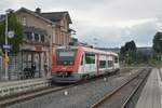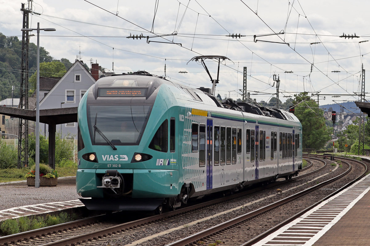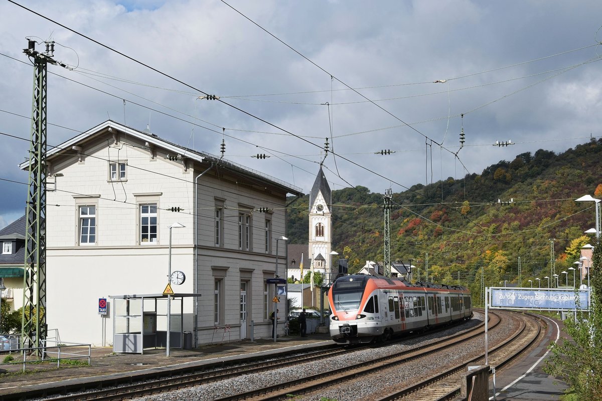 Vias ET 412 (428 146/646) als RB 10 (25017) "RheingauLinie" Neuwied - Frankfurt (Main) Hbf fährt am 03.10.17 in den Bahnhof Kamp-Bornhofen ein.