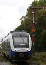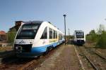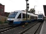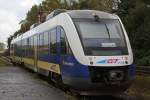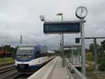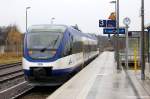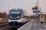 VT 702 der Ostseeland Verkehr GmbH kurz vor der Abfahrt im Bahnhof von Rehna nach Parchim  über Schwerin Hbf und Crivitz am 03.12.2010