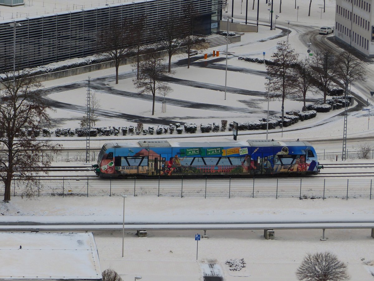 Die Vogtlandbahn mit dem 650 564-7 ( 9580 0650 564-7 D-DLB ) verlässt das verschneite Gera Richtung Weischlitz am 6.2.2021