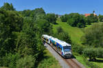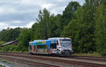 Die 9580 0650 064-8 D-DLB der Vogtlandbahn steht in Gera am 29.6.2025 abfahrbereit in Richtung Adorf (Vogtland)