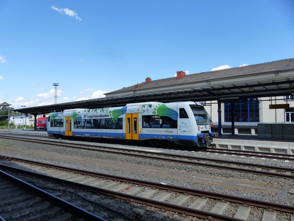 Die 9580 0650 064-8 D-DLB der Vogtlandbahn steht in Gera am 29.6.2025 abfahrbereit in Richtung Adorf (Vogtland)