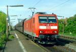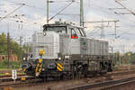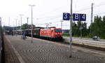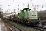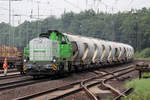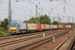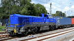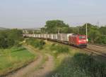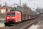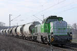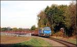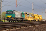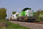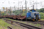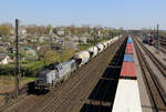 Ein sogenannter Schienenladewagen (SWL) der Fa. vossloh Rail Services in einem gemischten Güterzug am 18.04.23 Durchfahrt Bahnhof Saarmund. Lothar Stöckmann