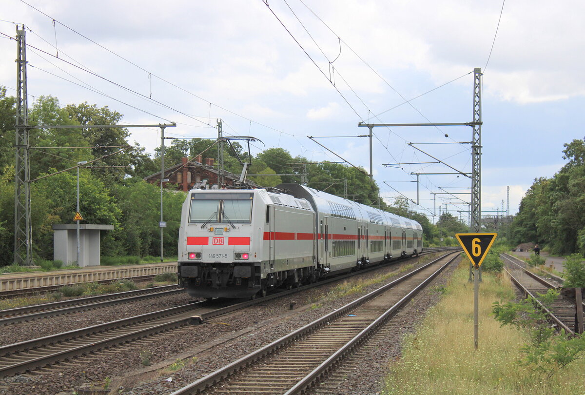 DB Fernverkehr 146 581 mit IC 2202 Köln Hbf - Bremerhaven-Lehe (bei Lembruch, 20.08.2022).
