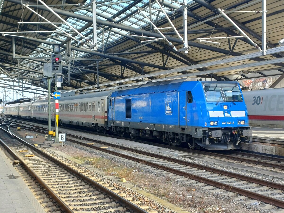 DB 101 009-9 mit dem IC 2155 von Köln Hbf nach Erfurt Hbf, am 22.03.2026 in Erfurt-Bischleben. Baustellenbedingt endete der Zug schon in Erfurt und nicht in Gera Hbf.