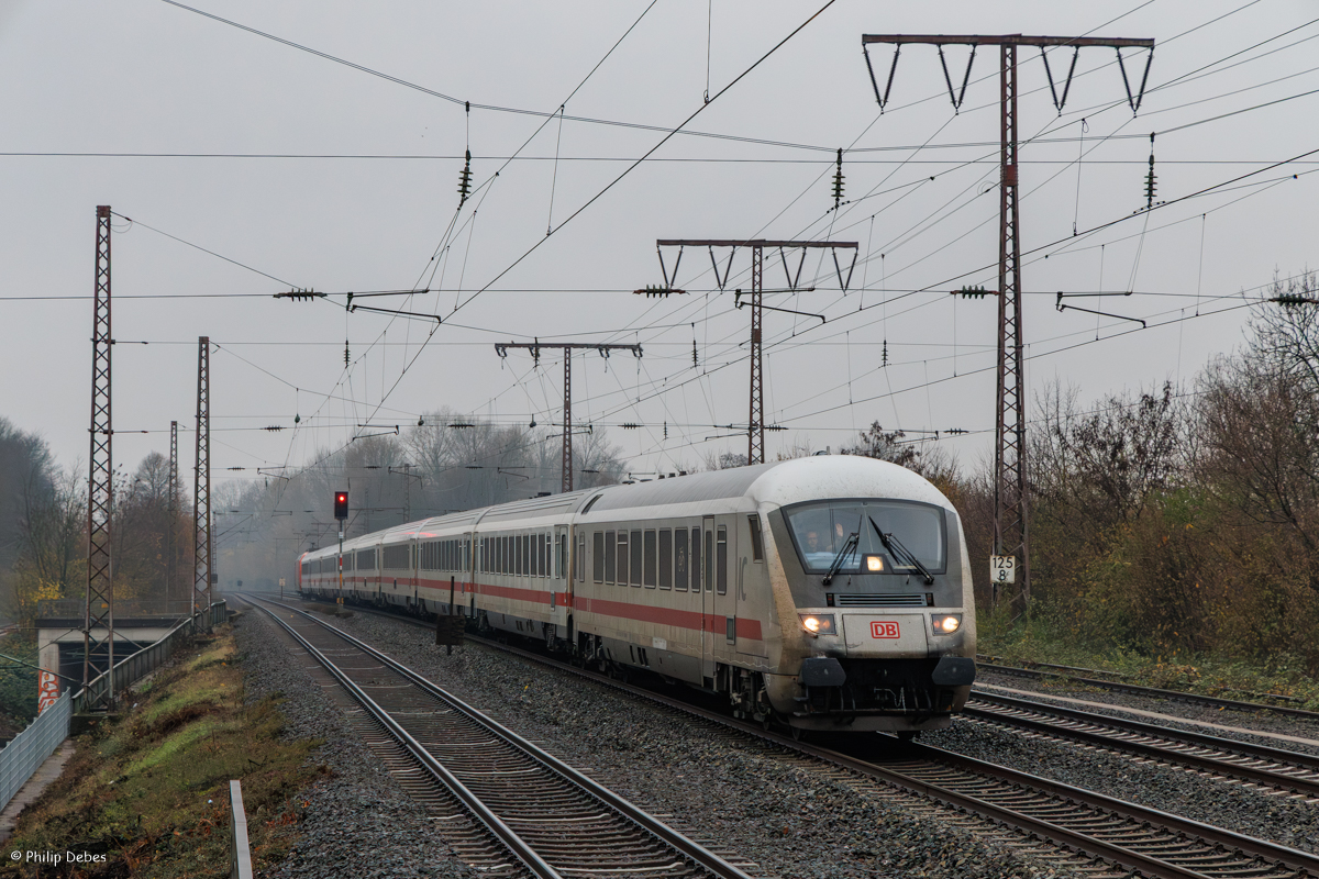Ein Apmz 125 fährt mit seinem IC in Richtung Mannheim aus Stuttgart Hbf aus. Diese Bauserie stammt noch aus dem TEE und hat noch Drehfalttüren. Auch er hat die für die Apmz charakteristischen kleinen Fenster. (Frühling 2014)