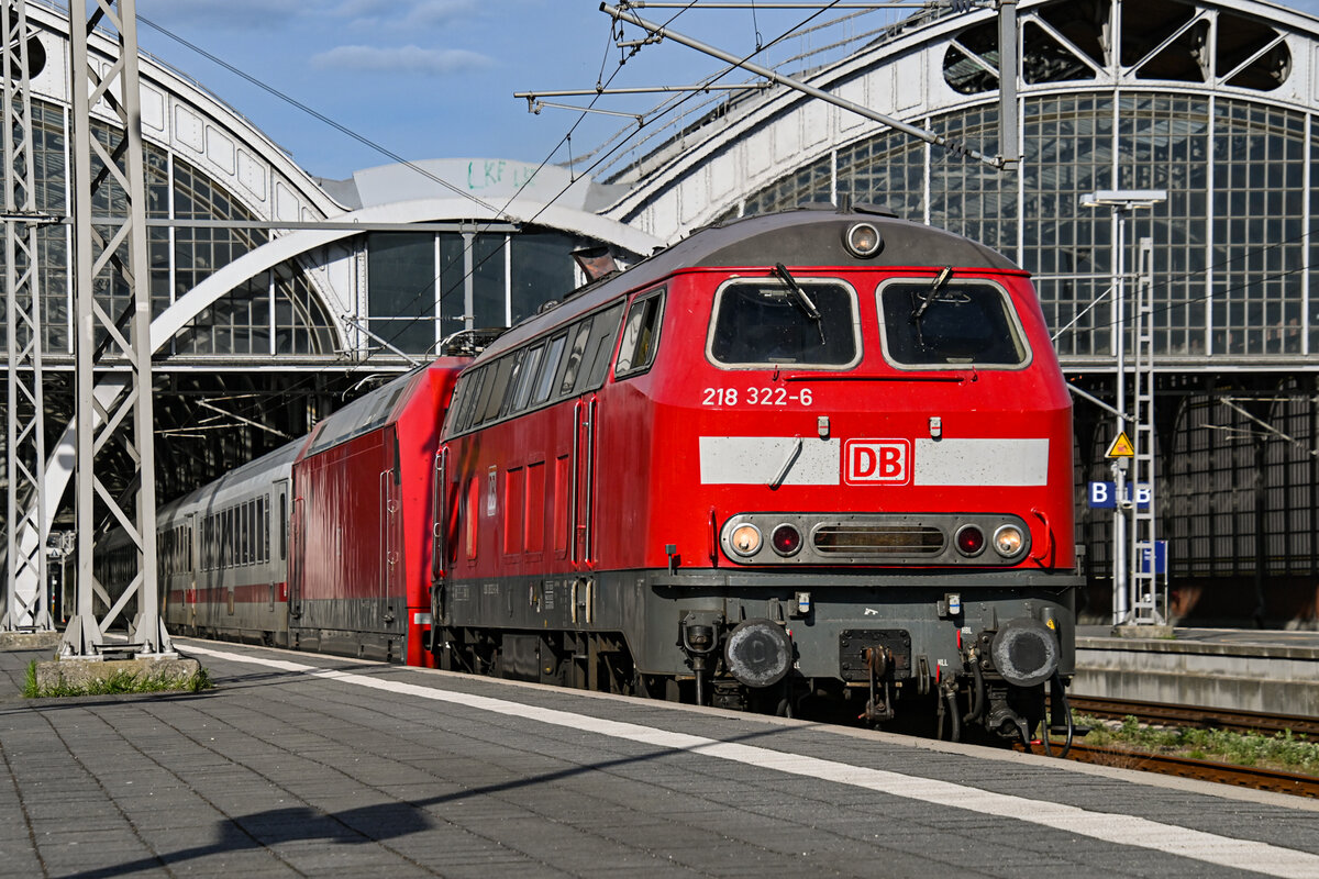 D-DB 218 322-6 zog am 26.04.2026 den IC 2264 von Lübeck Hbf (AL) nach Bad Kleinen (WK). Ab Bad Kleinen (WK) übernahm dann D-DB 101 111-3 die weiterfahrt nach Rostock Hbf (WR).
