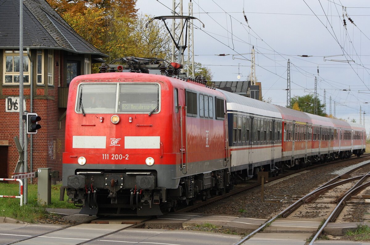 Die Elektrolok 111 049-3 (GfF) beförderte am 23.09.2025 einen Leerreisezug von Crailsheim ins Rheinland. Die ehemaligen Silberlinge gehören der Gesellschaft für Fahrzeugtechnik (GfF) in Crailsheim und werden für Ersatzverkehre als "Maas-Wupper-Express" in Nordrhein-Westfalen benötigt. Das Bild zeigt den Zug bei der nachmittäglichen Durchfahrt in Würzburg-Zell. Matthias Kümmel