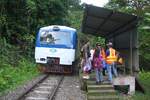 Eurovapor 77 250 mit dem GleisGlück-Sonderzug  Mit Volldampf um Würzburg  am 28.12.2025 bei Km 3,2 nahe Zeuzleben auf der Werntalbahn. Hier der Nachschuss auf die etwas kraftlos am Zugschluss hängende Dampflok 52 7409 der DGEG. Der Zug hatte zuvor außerplanmäßig im Betriebsbahnhof Mühlhausen (Wern) rund 30 Minuten gehalten, bevor die Reise mit der entsprechenden Verspätung weiterging.