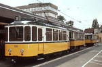 SSB Stuttgart__Zahnradbahn__Tw 101 [ME 1935] und Tw 103 [ME 1937] in der Tw-Halle im Alten Zahnradbahnhof. Nachdem am 08.09.1980 die wochenlange große Streckenertüchtigung (für die 1982 in Betrieb genommenen ZT4.1) zu Ende war, durften zunächst die Alt-Fahrzeuge die neue (jetzt doppelt so lange) Schiebebühne im Betriebshof benutzen.__02.06.1981