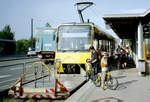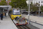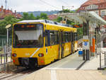 Triebwagen 1002 mit fahhradbeistellwagen am 19.8.21 an der Station Marienplatz  als Linie 10 nach Degerloch