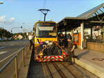 Triebwagen 1002 mit fahhradbeistellwagen am 19.8.21 an der Station Marienplatz als Linie 10 nach Degerloch