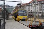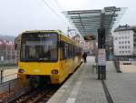 Fahrradwagen voraus - heisst es bei der Stuttgarter Zacke. Fahrräder werden unentgeltlich mitgenommen, allerdings nur bergauf. Am 12.4.2013 wurde diese Möglichkeit noch zurückhaltend genutzt, obwohl dies einer der ersten Tage mit Temperaturen über 10°C war. Zwischen Liststraße und Pfaffenweg.