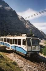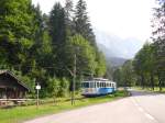 Die Bayrische Zugspitzbahn ist am 21.08.10 auf dem Weg vom Bahnhof Eibsee nach Grainau unterwegs.