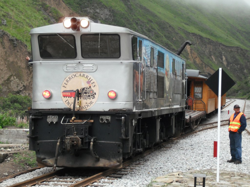 Eine GEC-Alsthom AD 24 steht am 13.02.2011 in Sibambe, Ecuador nach der Fahrt von Alausí zum Umrangieren bereit.