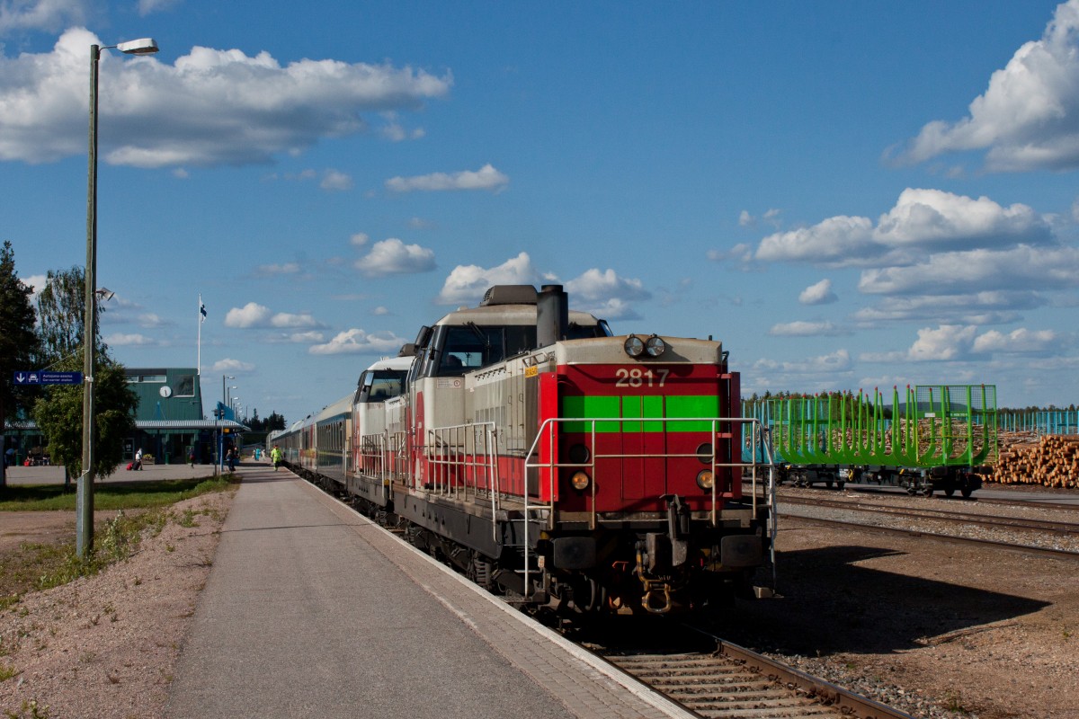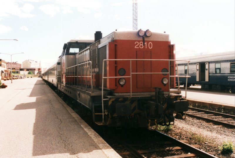 Eine Diesellok Dr 16 2805 im Rangierbetrieb auf dem Bahnhof von Kokkolan am 17.06.2012