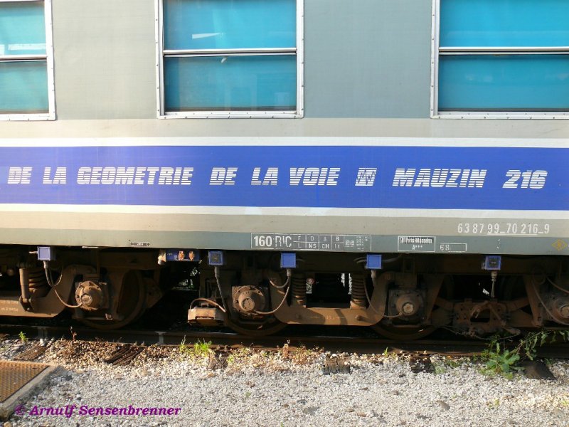 Fahrzeugportrait des Matissa M 1200 der SNCF. Geschleppt von WLE 51. (Zwingenberg/Bergstrasse, Mitte April 2009)