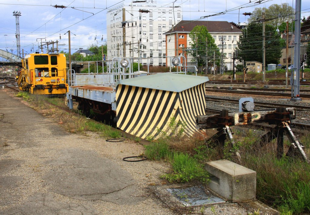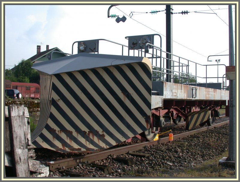 Die Jurahochebenen rund um Frasne auf ca 800m ü/M. können im Winter ganz schön tückisch sein. Grosse Schneemengen und vor allem Schneeverwehungen können den Bahnverkehr behindern. Daher sieht man überall diese abgestellten Schneepflüge, wie hier in Frasne. (05.06.2007) Herbert Graf