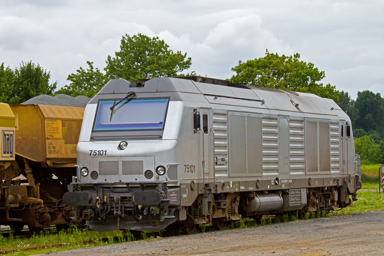 Die BB 75101 zum Test bei der HSL Logistik hier im Anschluss des Bf Pasewalk-Ost - 07.08.2011