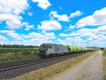 Mommenheim - 9. Mai 2025 : Dieser Lineas Getreidezug fährt nur Freitags von Neuf-Brisach nach Châlons en Champagne. Gezogen ist er von der 75043.