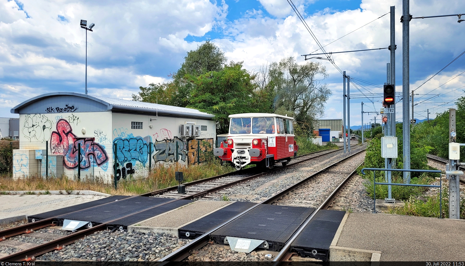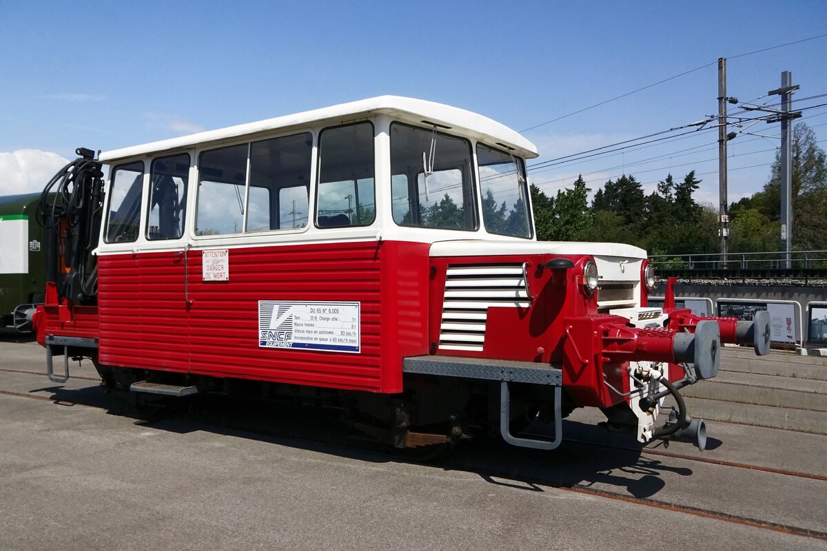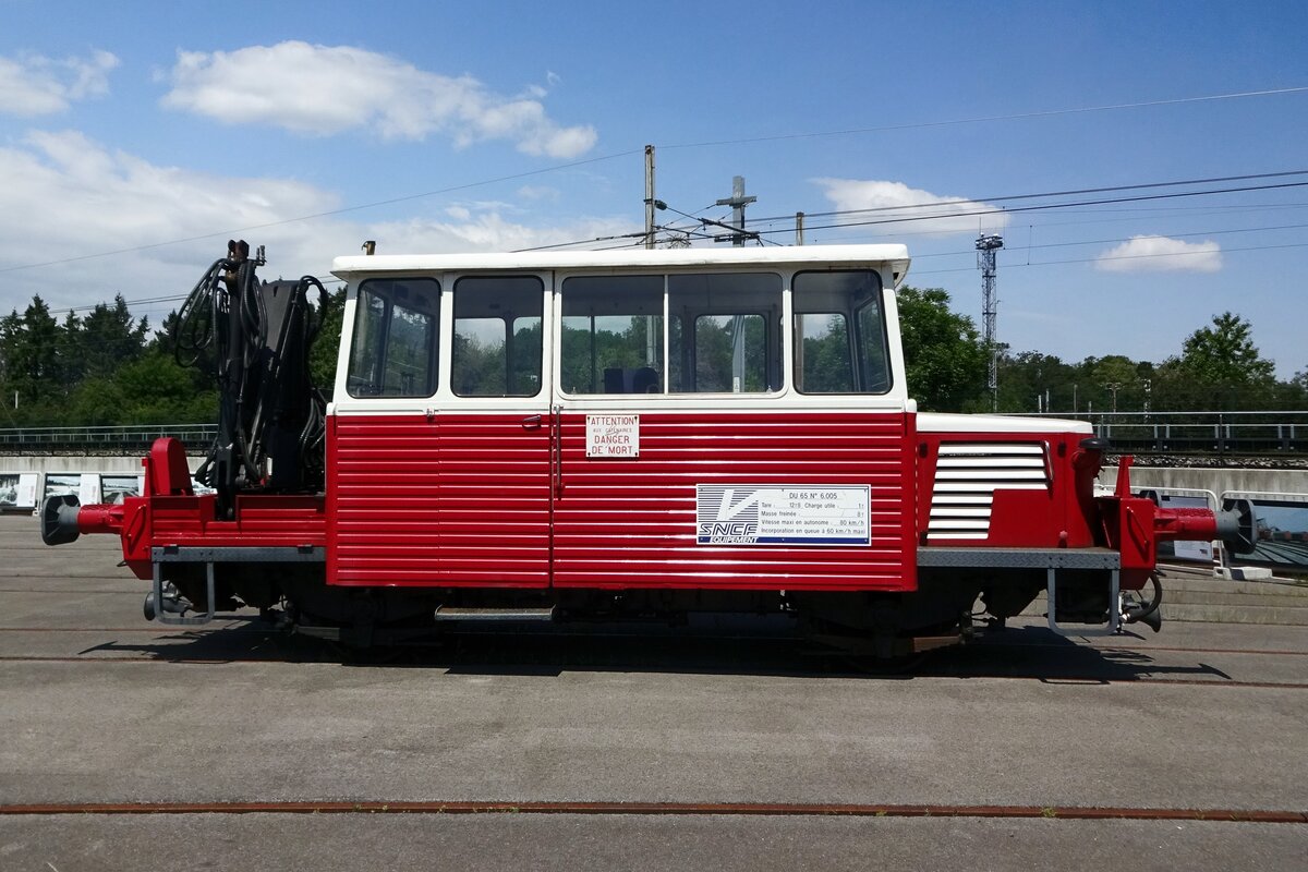 Draisine TYP DU 65 des Train Touristique der Velorail du Larzac im Bahnhof von Sainte-Eulalie-de-Cernon. Mit dem Vélorail (Fahrraddraisine) kann man seit 2008 von Sainte-Eulalie-de-Cernon 8 km bergab fahren, um dann mit dem Train Touristique zurück geholt zu werden. (12.09.2007)