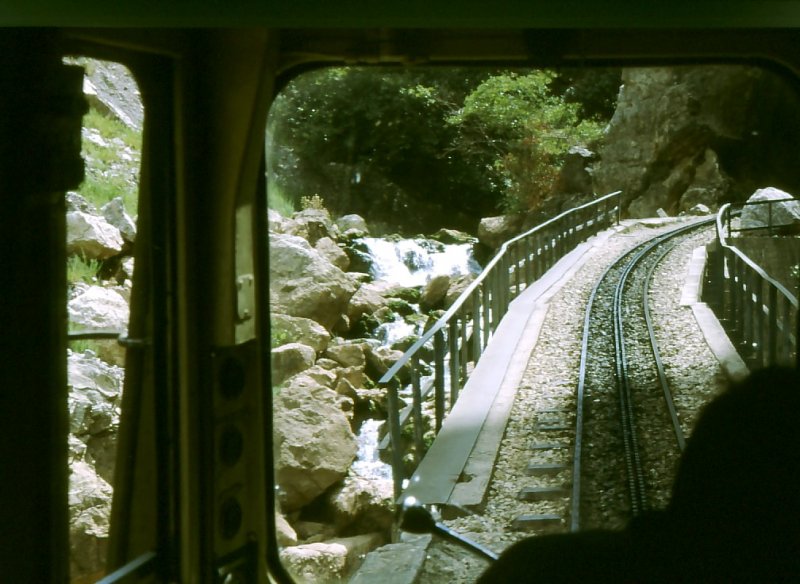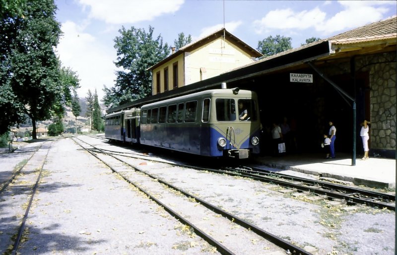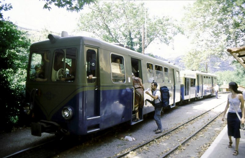 Diakofto-Kalavrita. Der in der Mitte eingereihte Dieselmotorwagen. Diakofto, 3.September 2001.