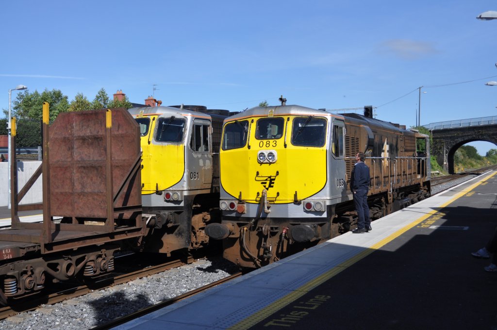 IERLAND sep 2012 KILDARE LOC 083 naast LOC 081 gereed om de goederen wagons over te nemen