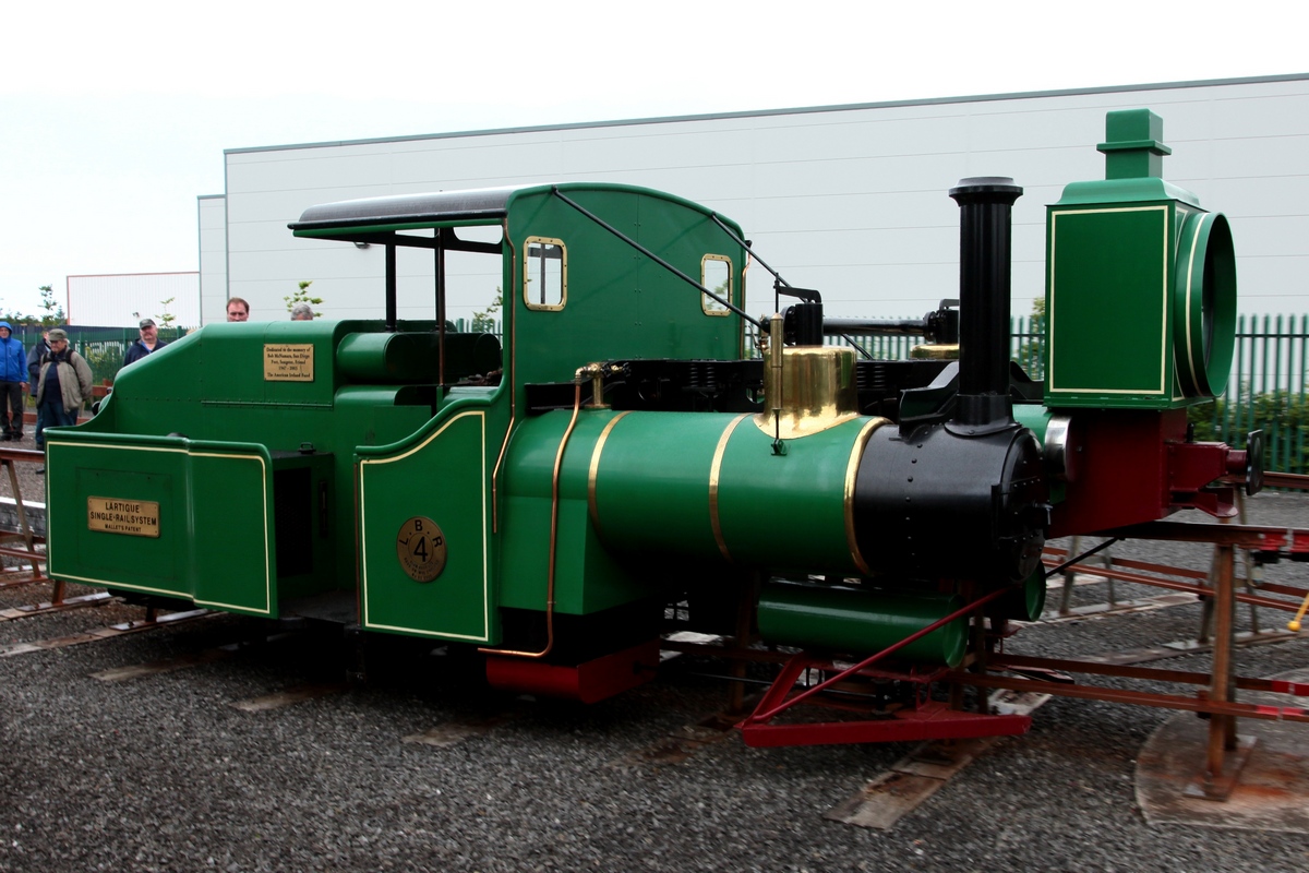 Die Erfindung des französischen Ingenieurs Charles Lartigue veranlasste den Bau der Strecke von Listowel nach Ballibunion. Die Strecke existierte von 1888 bis 1924 und war weltweit die erste Einschienenbahn zur Beförderung von Reisenden. Wie bei den Kamelkarawanen in Afrika wurden die Lasten beidseitig aufgehangen, so auch die Personenwagen. Rückansicht eines Reisezugwagens am 20.06.2016 in Listowel.
