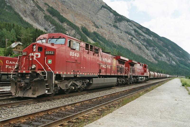 Im Bahnhof Jasper legt der von 6456 der Via Rail angeführte "Canadian" am 18.10.2022 einen einstündigen Stopp ein.