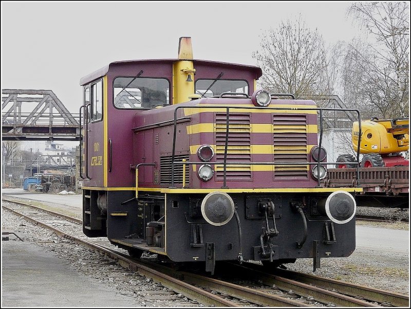 Auch die CFL besitzt Kleinloks (oder Locotracteurs). Hier die CFL 1004 im Bahnhof Bettembourg/Betebuerg/Bettemburg.