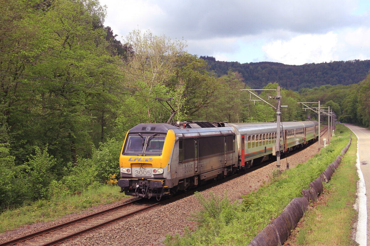Der IR Liers-Luxemburg fährt am 26.01.10 durch die leicht gezuckerte Landschaft in Enscherange. (Jeanny)