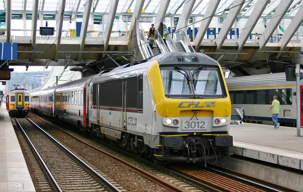 CFL 3012 mit IC aus Luxemburg im futuristischen Bahnhof Liege-Guillemins am 14. Juli 2007.