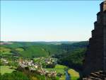Die Bahn sieht in der Tat winzig aus, wenn man etwas unterhalb der Burg hinunter ins Tal schaut.