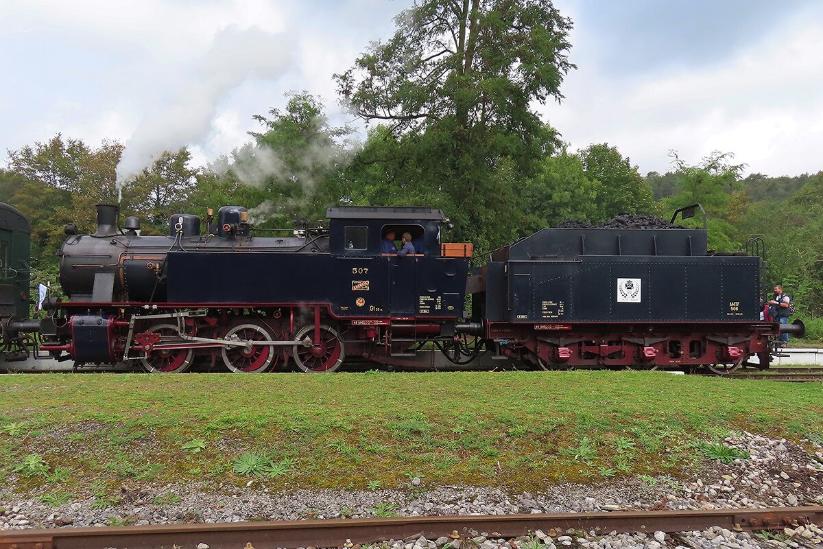 AMTF Lok 8 (Hohenzollern 2609/1910) am 07.09.2025 in Fond-de-Gras. Die Lokomotive vom Hohenzollern Typ Aachen wurde 1910 an die Gelsenkirchener Bergbau-AG ausgeliefert. 1919 wurde sie an die Société Métallurgique des Terres Rouges verkauft und im Werk Belval eingesetzt. 1937 wurde daraus die ARBED, Aciéries Réunies de Burbach-Eich-Dudelange, die Lok wurde im Laufe der Zeit in 770 umgezeichnet. In den 1990ern kam die Lok schließlich zum AMTF. Leonhard Groß