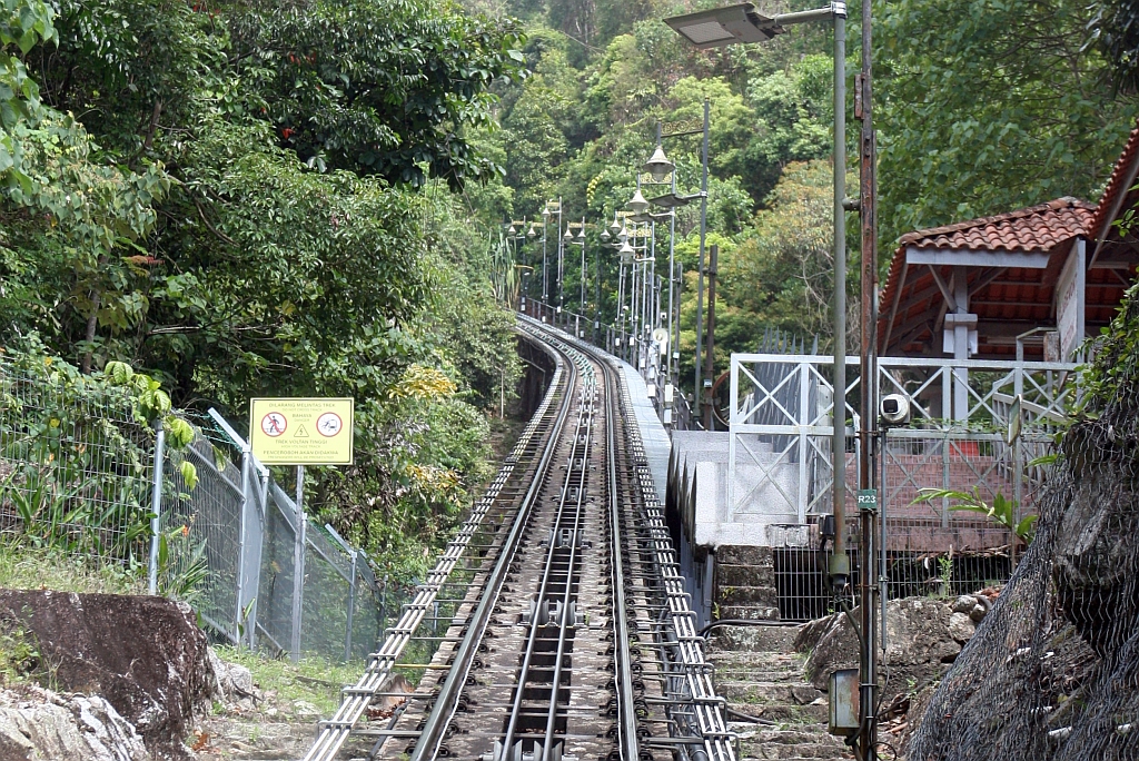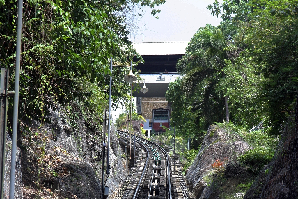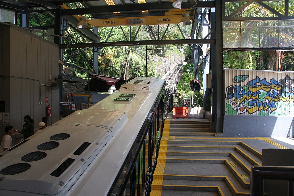 Wagen "Pinang" der 3.Generation in der Stesen Bukit Bendera (Penang Hill Station) der KBB (Keretapi Bukit Bendera / Penang Hill Railway) am 18.Februar 2025.