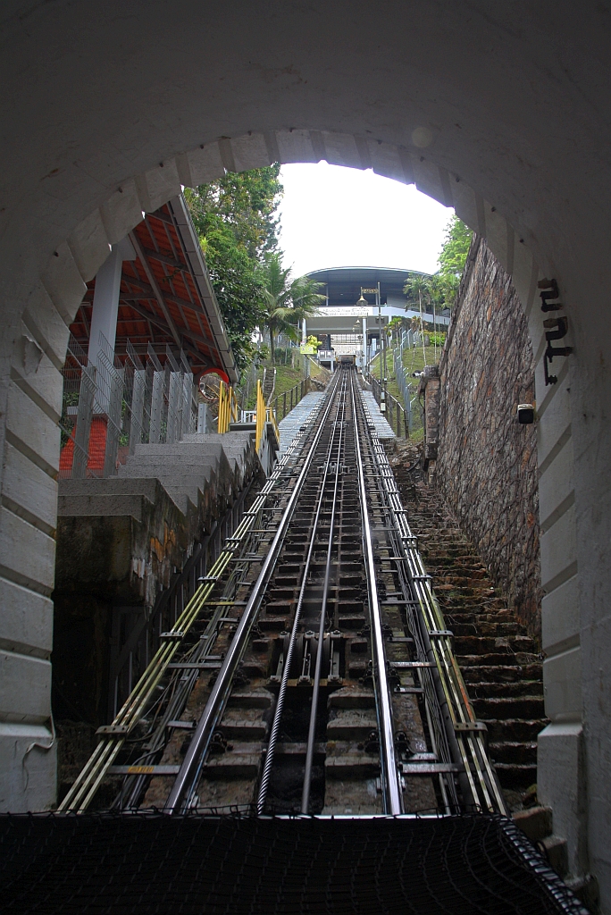 Blick von der KBB (Keretapi Bukit Bendera / Penang Hill Railway) Stesen Bukit Bendera (Penang Hill Station) talwärts in Richtung Tunnel. - Bild vom 18.Februar 2025. Karl Seltenhammer