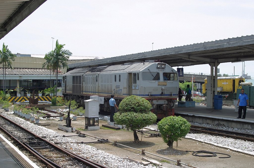 24112 zieht den Zug 11 von Butterworth nach Kuala Lumpur. Hier ist der Zug am 14.01.2013 bei der Einfahrt in Bukit Mertajam zu sehen.