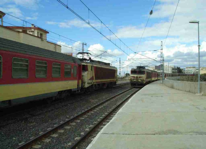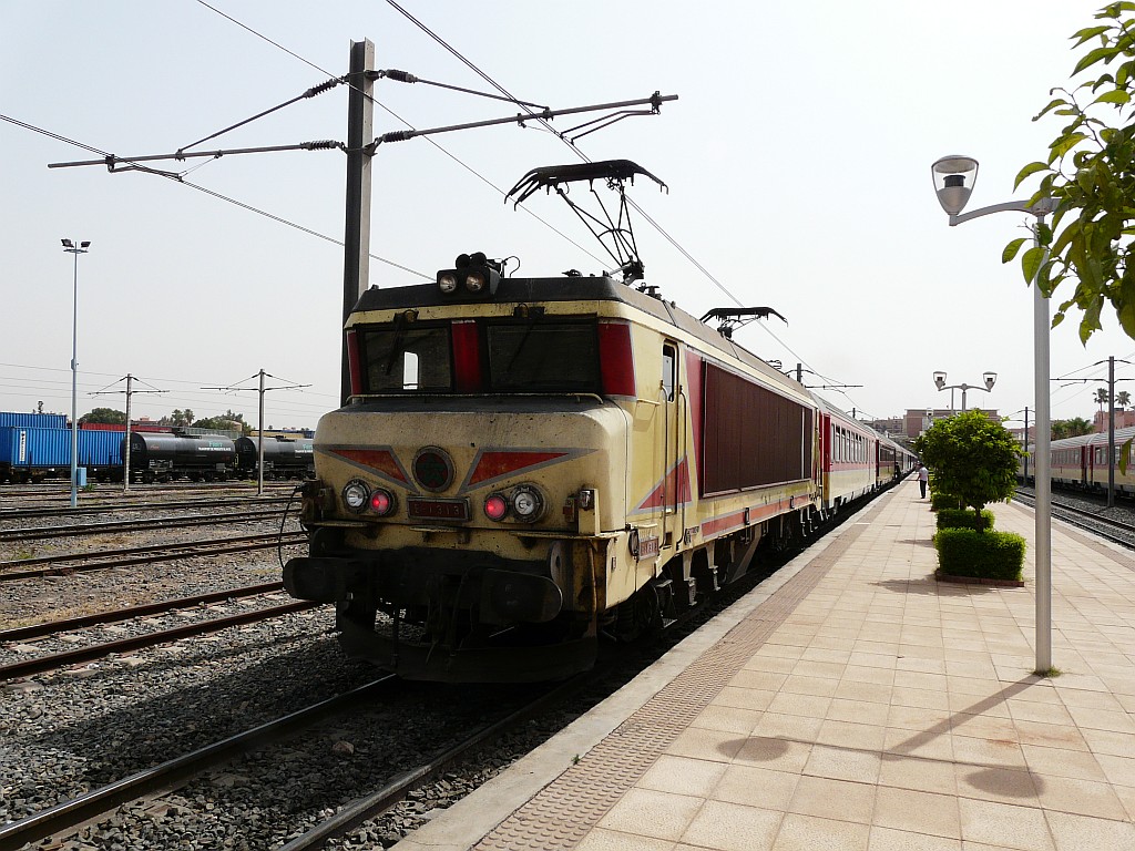 Eine E-1300 auf einem Kreuzungsbahnhof zwischen Rabat und Marrakesch! Dieser Bahnhof und deren Betrieb sollte sich jeder Berufseisenbahner mal unter die Lupe nehmen!