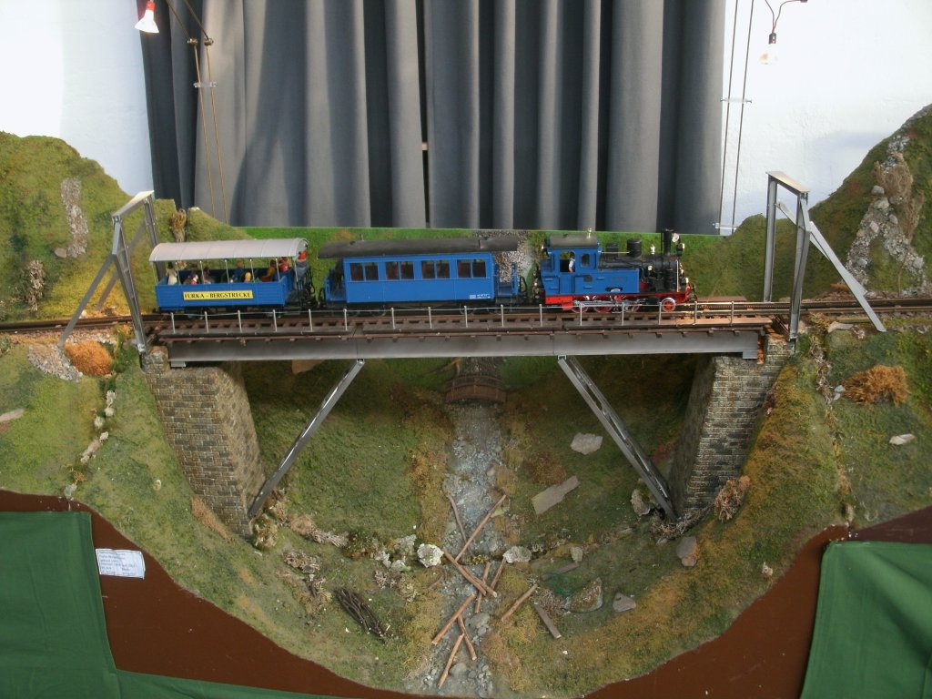 Das bekannte Motiv von der Steffenbachbrücke an der Furka-Oberalpbahn gab es,am 29.Oktober 2011,im alten Postbahnhof in Berlin zusehen.